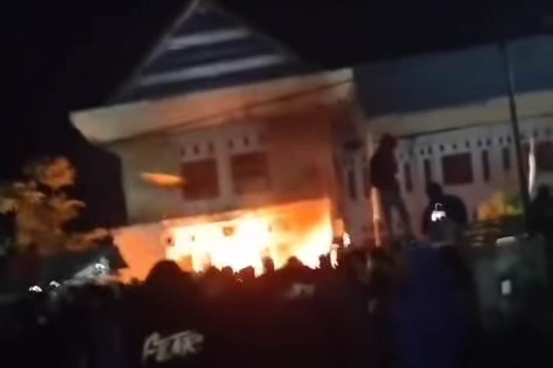Poto : Kantor DPRD Majene sempat dibakar, Api berhasil dipadamkan