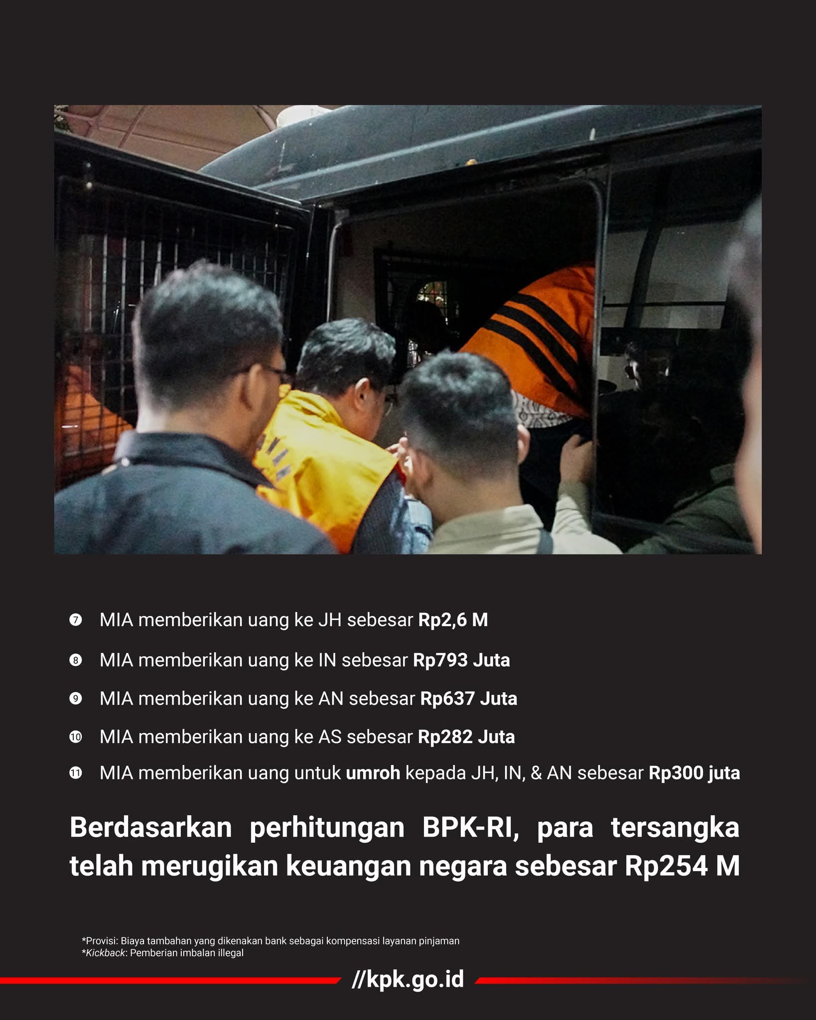 Para tersangka diduga bersekongkol dalam proses pencairan kredit usaha kepada calon debitur dengan berbagai modus. Salah satunya melalui penyusunan dokumen analisis kredit yang tidak sesuai fakta sebenarnya, serta melakukan mark-up terhadap penilaian agunan agar tampak mencukupi syarat pencairan.