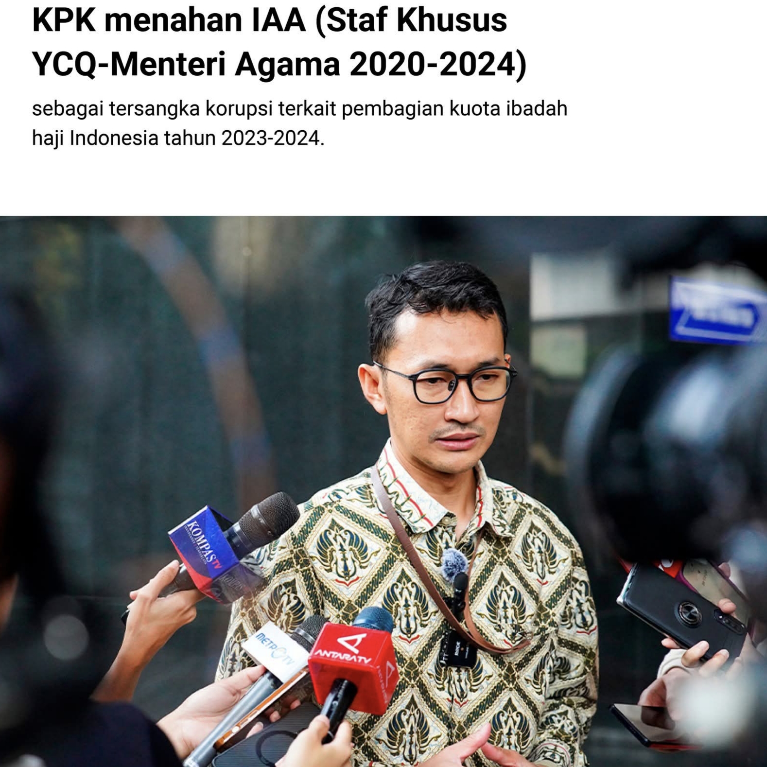 KPK Tahan Staf Khusus Eks Menag Terkait Dugaan Korupsi Kuota Haji