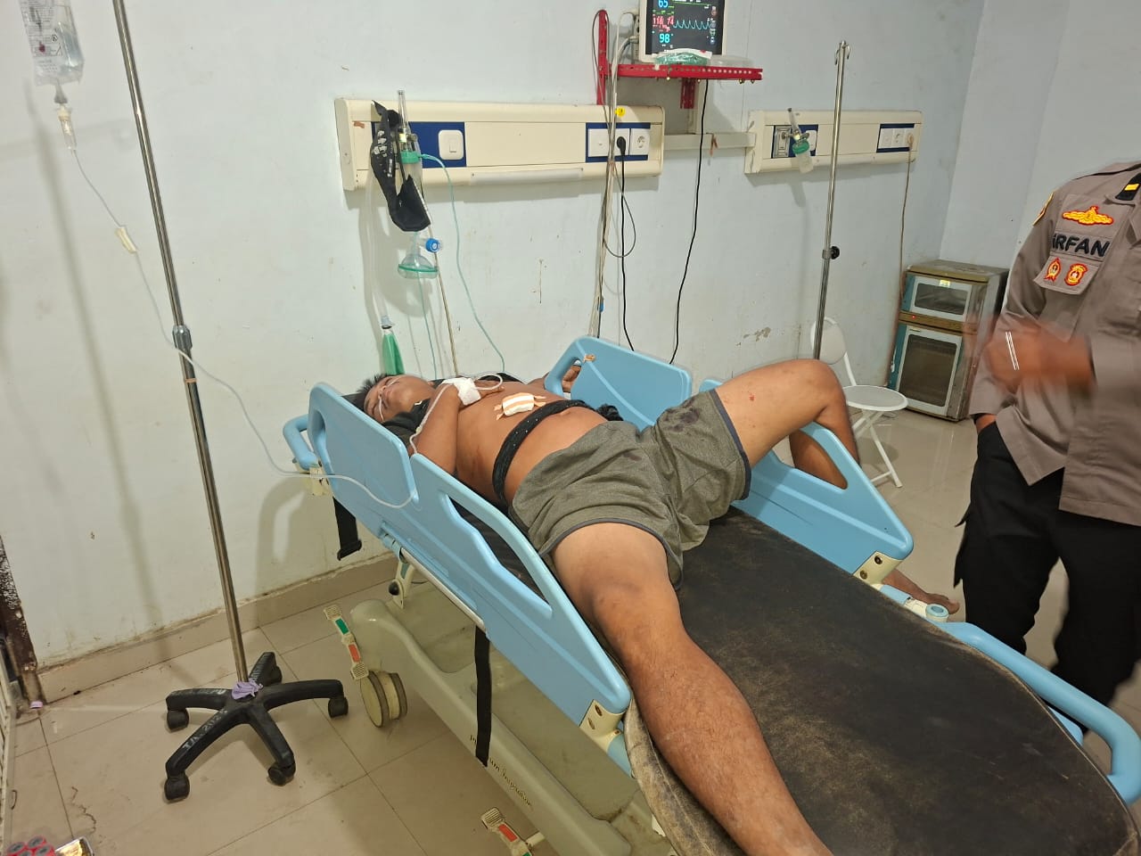 Korban mengalami luka tusuk di bagian perut dan saat ini tengah menjalani perawatan intensif di RS Hj. Andi Depu Polewali.
