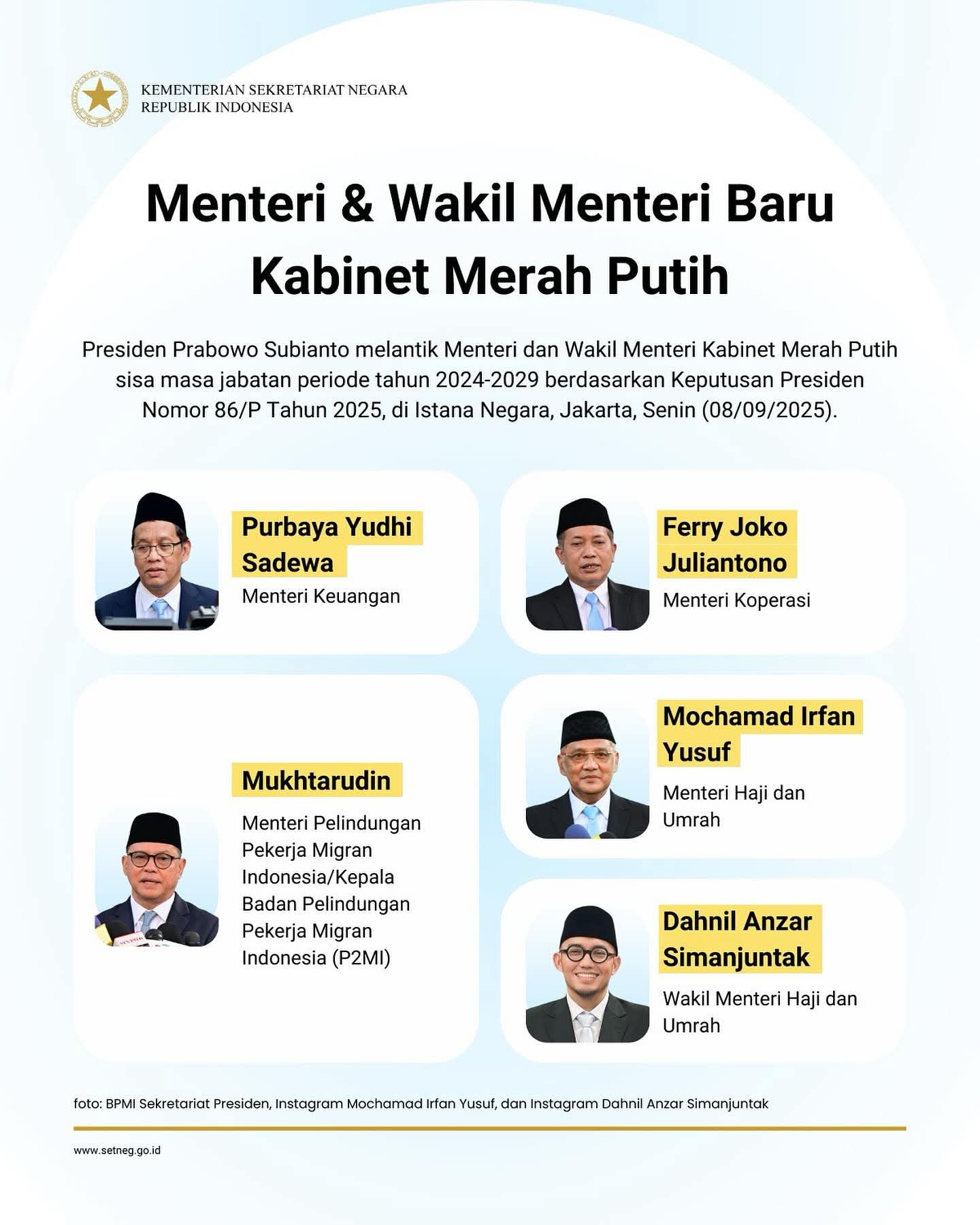 Pelantikan ini menandai langkah konsolidasi Kabinet Merah Putih dalam memperkuat kinerja pemerintahan dan memastikan program prioritas nasional berjalan sesuai harapan masyarakat.