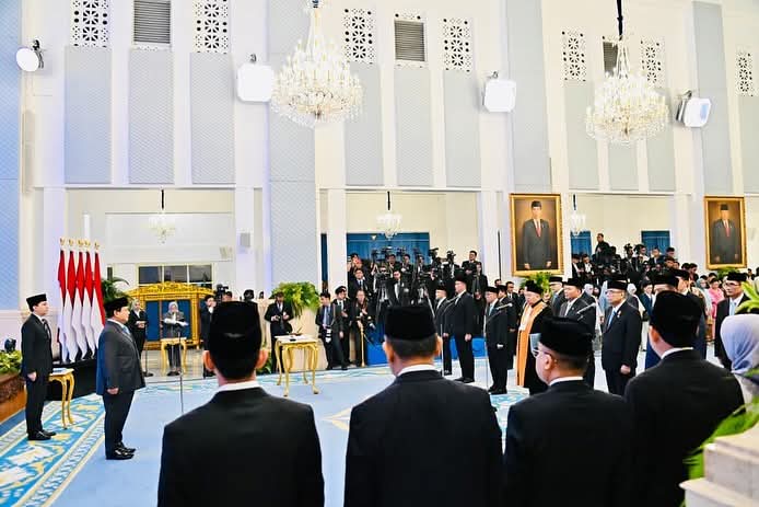 MafiaNews.id / Jakarta – Presiden Republik Indonesia, Prabowo Subianto, melantik sejumlah pejabat negara yang terdiri dari kepala dan wakil kepala badan, duta besar luar biasa dan berkuasa penuh Republik Indonesia (Dubes LBBP RI), serta Wakil Ketua Mahkamah Agung (MA) Bidang Yudisial, di Istana Negara, Jakarta, Senin (25/8).