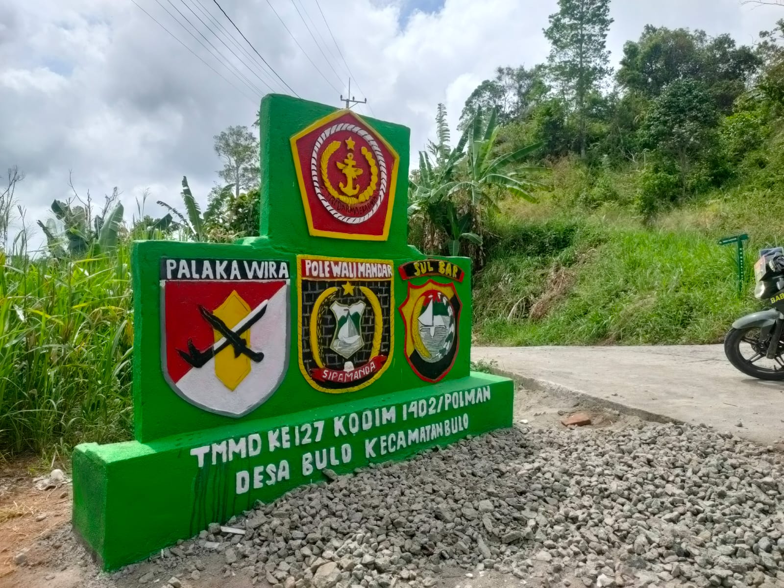 MafiaNews.id | Polman – Tugu program TNI Manunggal Membangun Desa (TMMD) ke-127 Kodim 1402/Polman di Desa Bulo, Kecamatan Bulo, Kabupaten Polewali Mandar, Sulawesi Barat, telah rampung dikerjakan.